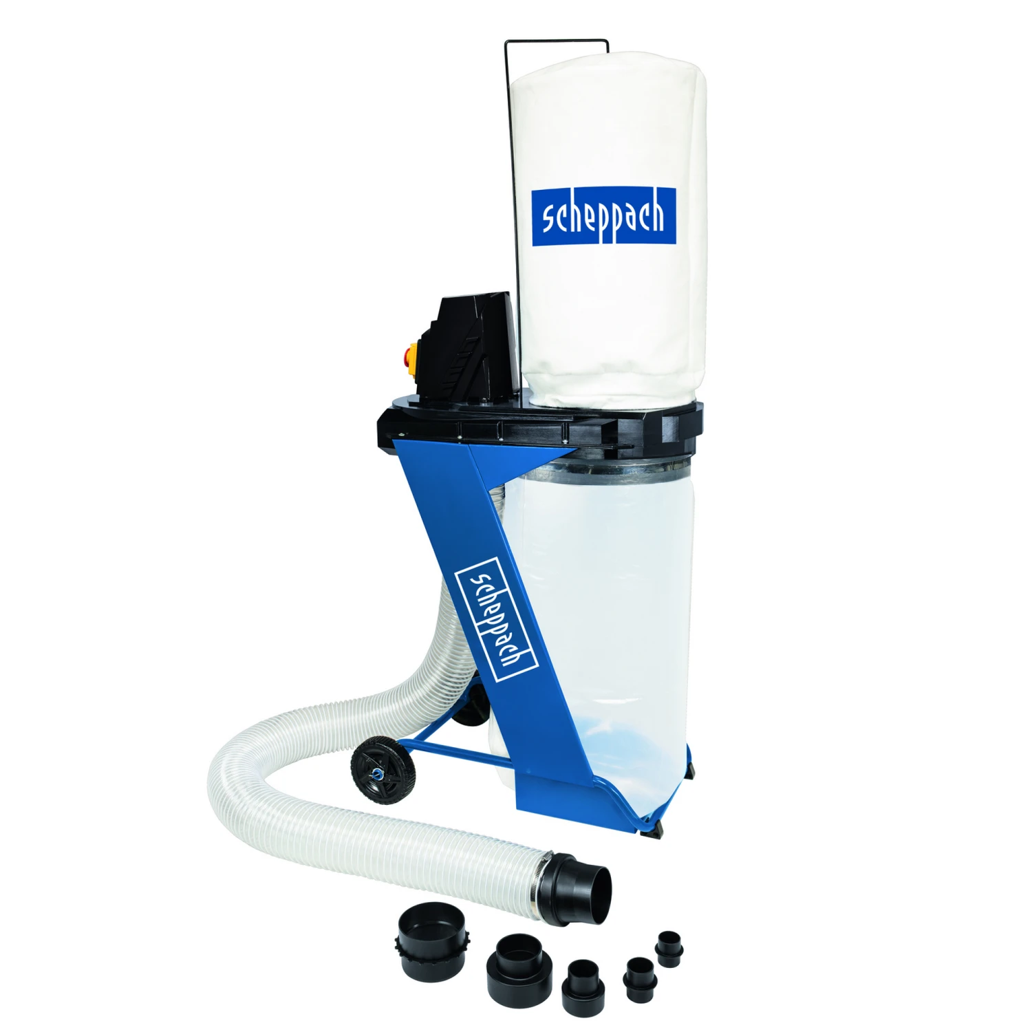 100 mm Schlauchdurchmesser und ein 6-teiliges Adapterset sorgen dafür, dass sich die ‚DC500‘ Absauganlage an viele verschiedene Maschinen anschließen lässt und mit einer Saugleistung von 1150 m³/h zuverlässig große Mengen Späne in den 75 Liter Auffangsack befördert. Damit bleibt die Werkstatt beim Sägen, Schleifen und Hobeln nahezu staubfrei.
