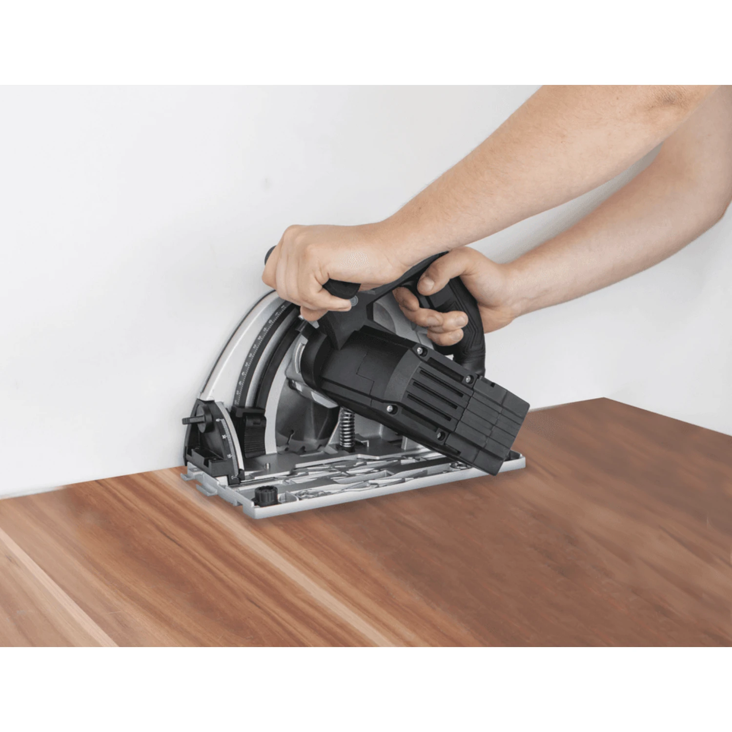 Die Akku-Tauchsäge ‚PL55LI‘ von Scheppach Black ist optimal geeignet für Massivholz, Arbeitsplatten, beidseitig beschichtete MDF-Platten und Laminat. Sie ist sehr kraftvoll durch ihren hochwertigen Lithium-Ionen Akku und ihr Sägeblatt besteht aus robustem Hartmetall. Zusätzlich ermöglicht das Sägeblatt mit 24 Zähnen ein sehr sauberes Schnittbild mit geringstem Ausriss bei Laminat und präzise Schnitte in Arbeitsplatten, Vollholz, Laminat und Kunststoff. Die Tauchsäge hat eine Sägeblattlänge von 16 cm und ihr geschlossener Sägeblattschutz ermöglicht eine effiziente Späneabsaugung.