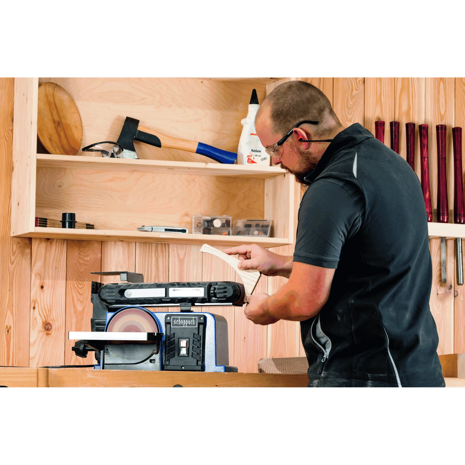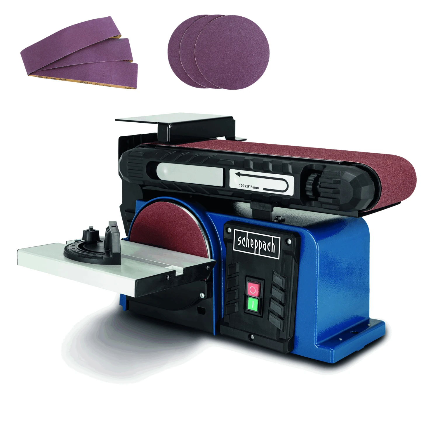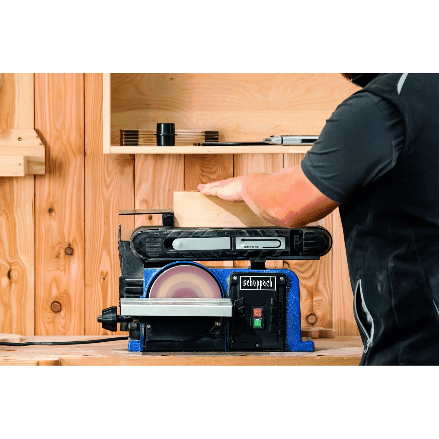 Der kombinierte Band- und Tellerschleifer Scheppach BTS900 ist das richtige Gerät für unterschiedlichste Detailarbeiten an allen Hölzern und holzähnlichen Materialien. Sein kraftvoller, aber dennoch laufruhiger 370 Watt Induktionsmotor sorgt für einen vibrationsarmen Betrieb. Der schwenkbare Auflagetisch und das 90 Grad verstellbare Schleifband ermöglichen eine Vielzahl an Anwendungen.