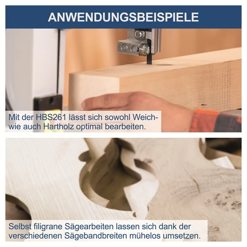 - Mit der HBS261 lässt sich sowohl Weich- wie auch Hartholz optimal bearbeiten
