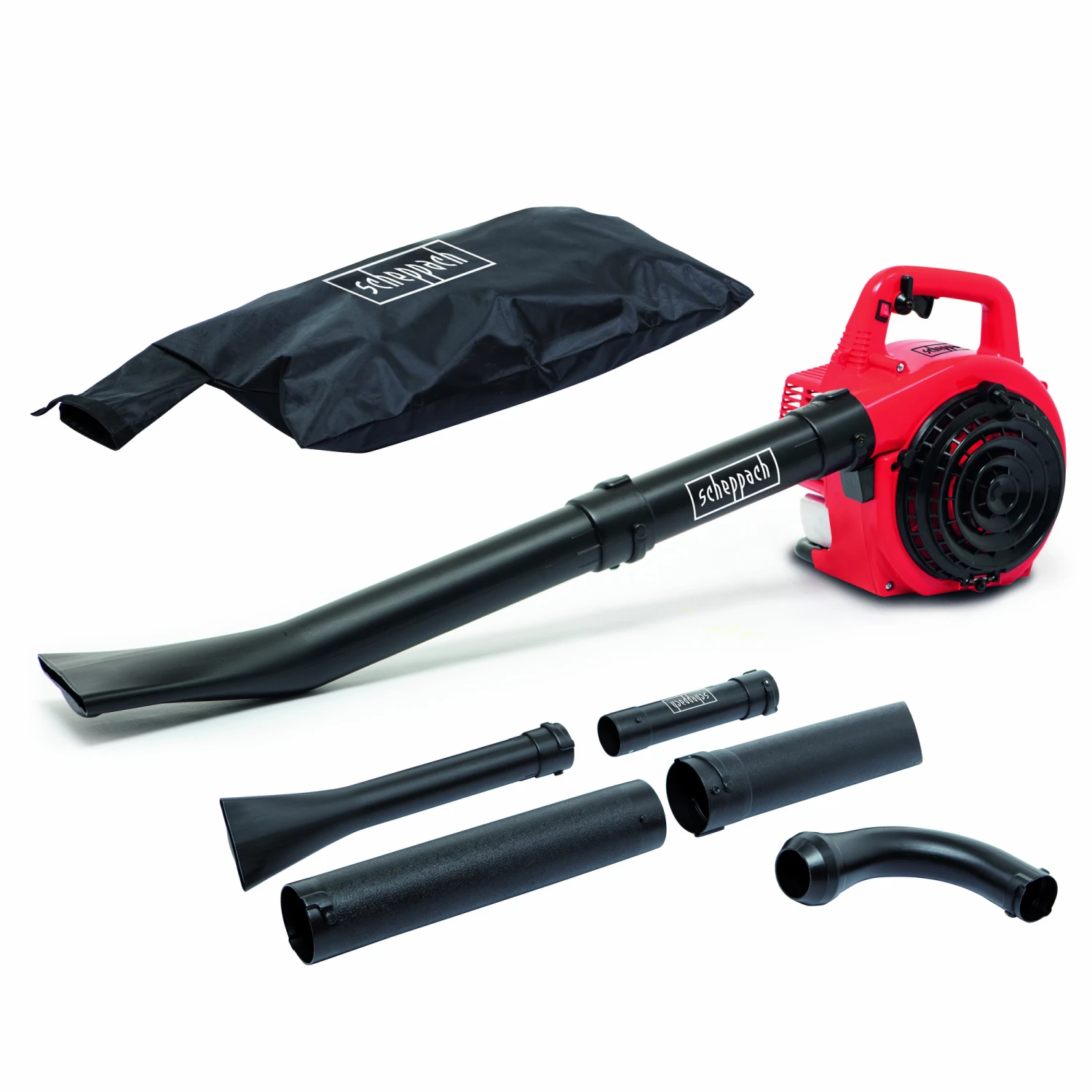 Lieferumfang: 1 x Laubsauger, 1 x Motoreinheit, 1 x Blasrohr, 1 x Düse, 1 x Zündkerzenschlüsse, 1 x Mischbehälter, 1 x Schraube, 1 x Beilagscheibe, 1 x Fangsack, 1 x Gebogenes Rohr, 1 x Vakuumrohr, 1 x Ansaug-Vakuumrohr