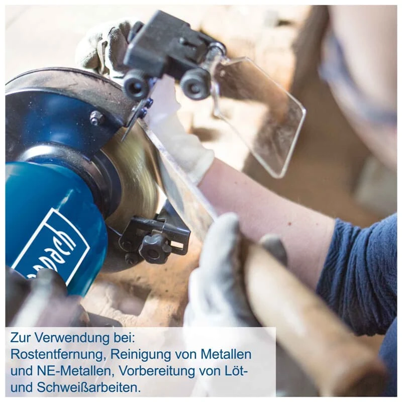 - Lieferung mit Schruppscheibe und Bürstenscheibe für alle Schleif- und Schärfarbeiten