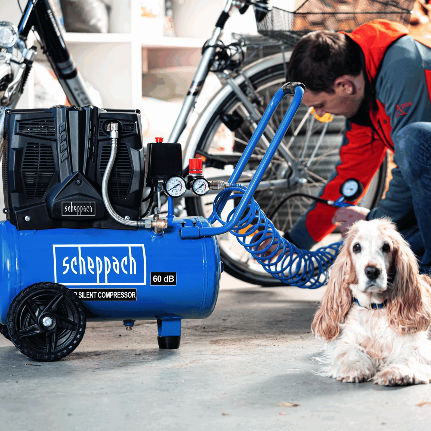 Der HC25Si von Scheppach ist gleichzeitig leise und leistungsstark. Als Silent Kompressor erleichtert er die Arbeit in mehrfacher Hinsicht – Zwei Druckanschlüsse mit eigenen Manometern ermöglichen einen schnellen Werkzeugwechsel und damit rasche Arbeitsfortschritte, ganz ohne Lärmbelastung. Der leistungsstarke 1100 Watt Motor füllt den 24 Liter Kessel mit einer Ansaugleistung von 230 l/min innerhalb kürzester Zeit.