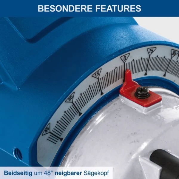 - Beidseitig um 48° neigbarer Sägekopf für professionelle Ergebnisse