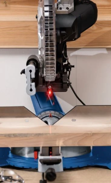- Eingebauter Laser für präzise Schnitte entlang der angezeigten Schnittkante