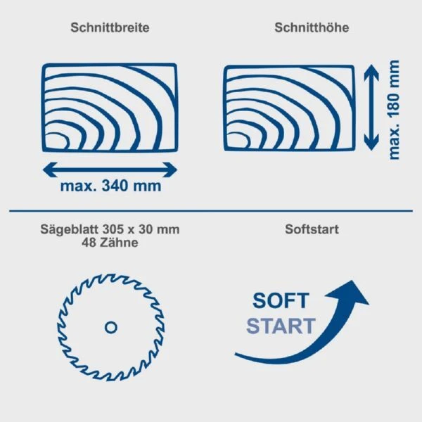 - Leistungsstarker 2000 Watt Motor mit Softstart-Funktion