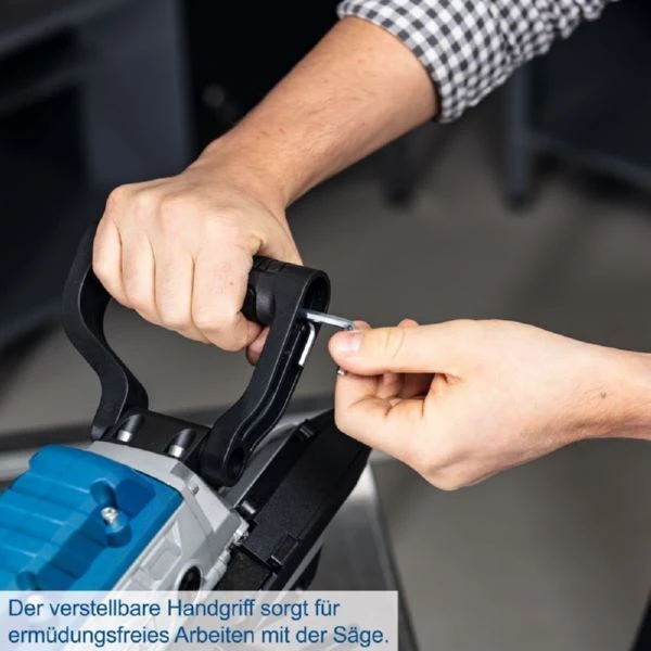 - Zwei isolierte Handgriffe, davon einer verstellbar, damit die Säge stets gut in der Hand liegt