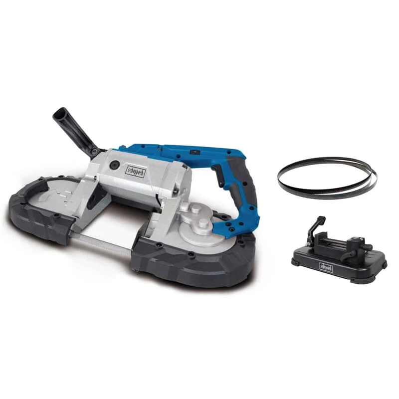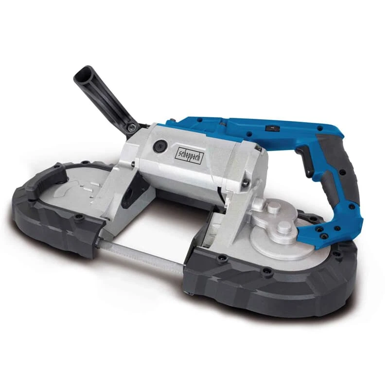 Die MBS1100 Metallbandsäge von Scheppach ist ein flexibel einsetzbares Gerät, denn sie lässt sich sowohl freihändig als auch fest montiert auf einem Untergestell nutzen. Fixiert auf ihrem Arbeitstisch sind mit der stationären Metallsäge exakt senkrechte Schnitte im 90° Winkel ganz leicht möglich, denn ein Werkstückanschlag und ein arretierbarer Bolzen sorgen dafür, dass das Werkstück beim Sägen optimal fixiert ist.