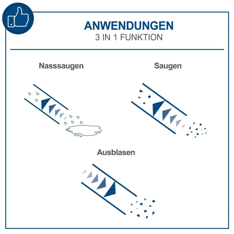- Inkl. Papierschmutzfangsack und Schaumstofffilter zum Nasssaugen