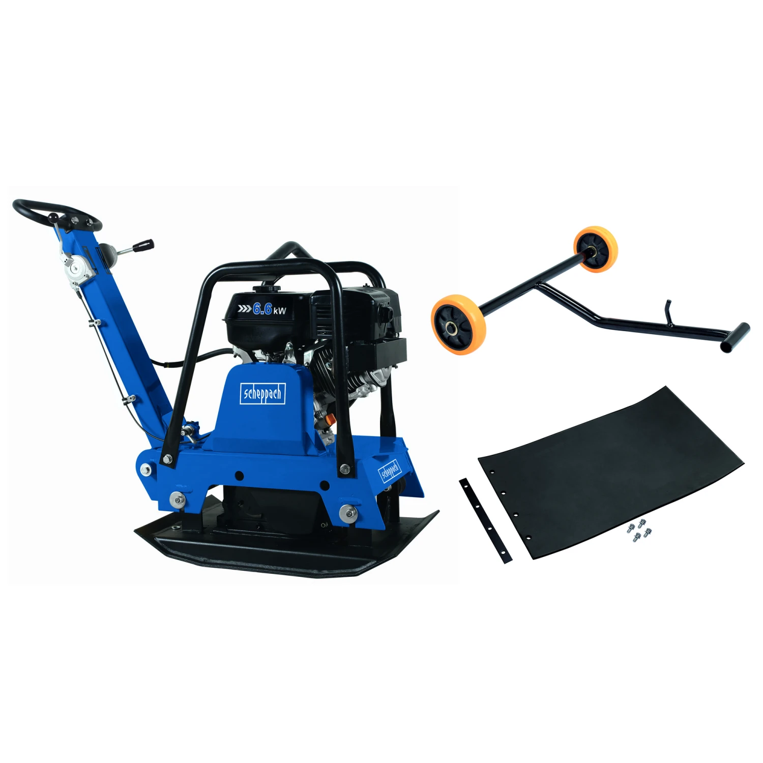 Lieferumfang: Rüttelplatte, Fahrvorrichtung, Gummimatte