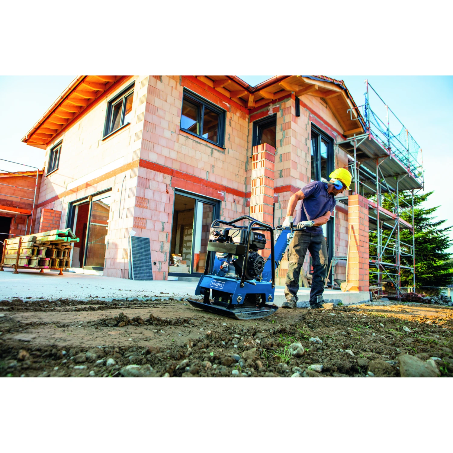 Verdichte Sand, Kies und weichen Boden mit dieser schweren und robusten Rüttelplatte. Reversierbare Rüttelplatten verfügen neben einem Vorlauf auch über einen Rücklauf, welche beide über den Bedienhebel gesteuert werden. Das Rüttlergehäuse ist mit der Grundplatte verschraubt. Der Verdichtungsdruck beträgt 30500 N. Die hohe Vorlaufsgeschwindigkeit erhöht deine Arbeitsleistung. Dank der Fahrvorrichtung kannst du das Gerät auch alleine transportieren.