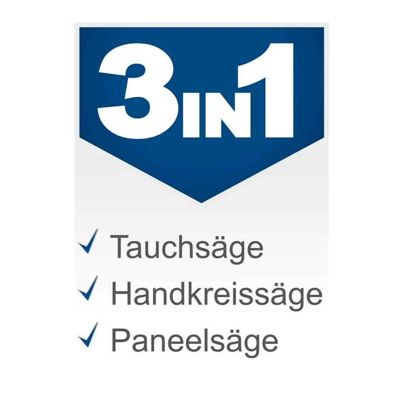 - Mit einer Schnitttiefe von 75 mm ist die Tauchsäge auch für größere Projekte bestens geeignet. So können z.B. auch große Türen optimal angepasst werden
