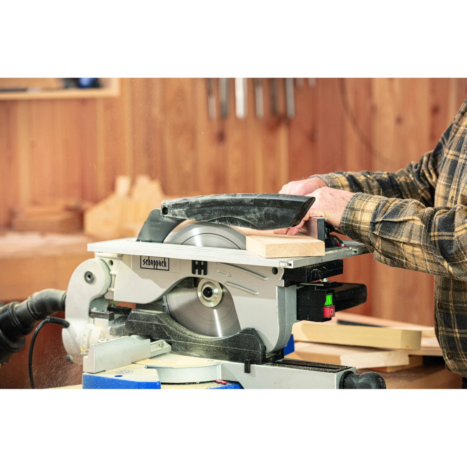 Die Scheppach ‚HM100T‘ vereint drei Sägen in einem Gerät: Kappsäge, Gehrungssäge und Tischkreissäge. Mit wenigen Handgriffen machst du aus einer Kappsäge eine Tischkreissäge. Das robuste und leichte Aluminium-Druckguss-Gestell sorgen für einen einfachen Transport. Der leistungsstarke 1800 Watt Motor eignet sich für einen vielseitigen Einsatz. Die stabile und verwindungssteife Konstruktion steht für höchste Qualität. Du siehst, die Säge bietet dir vielseitige Einsatzmöglichkeiten als Kappsäge wie auch als Tischkreissäge oder Gehrungssäge.