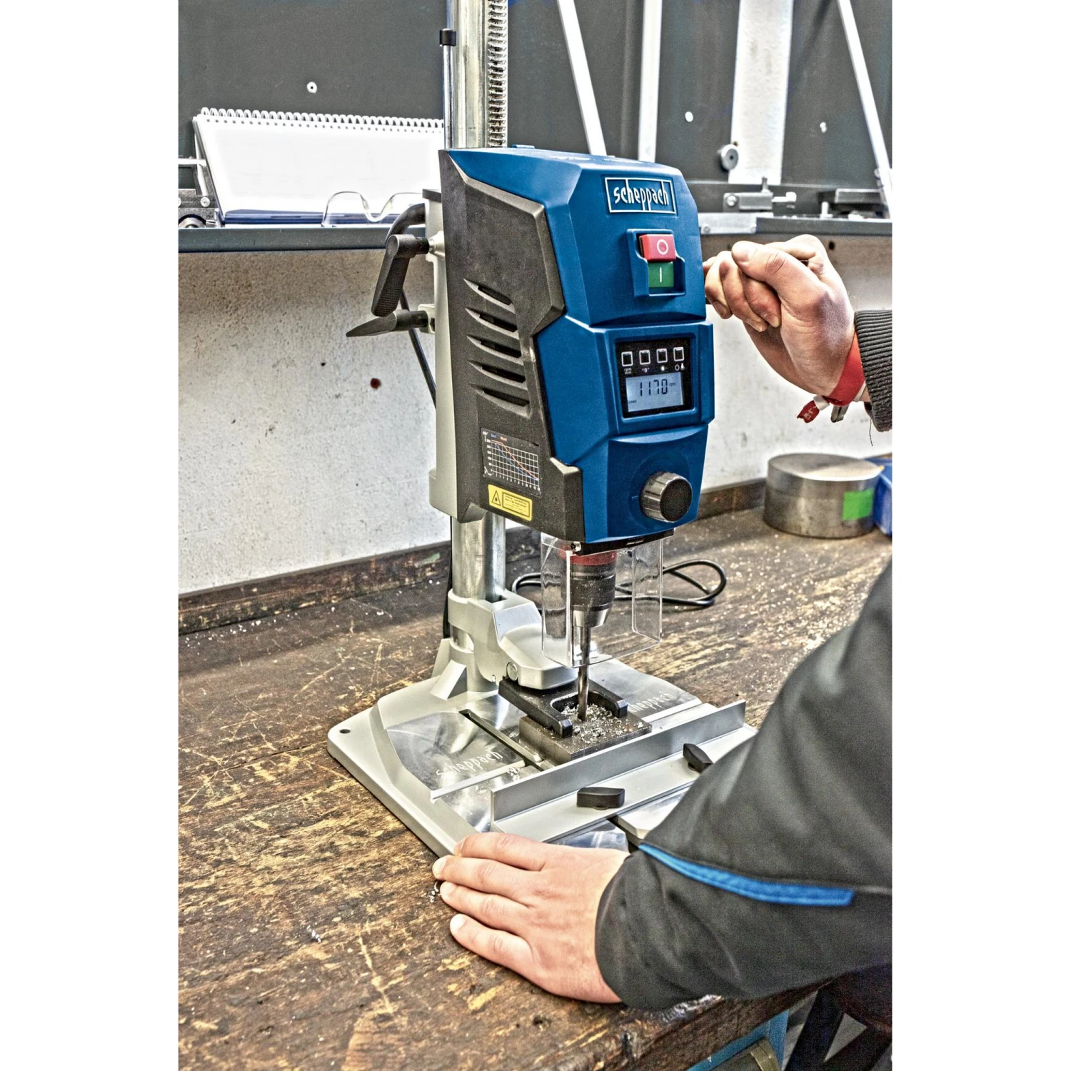 mit Digitaldisplay für eine exakte Einstellung der Drehzahl und Bohrtiefe